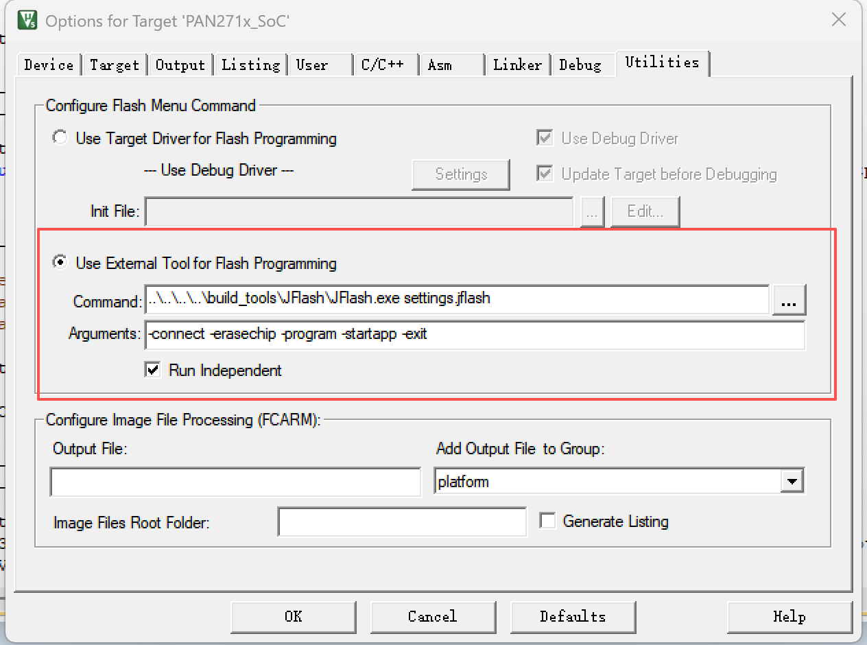 Q1:工程移位后,无法调用内置jflash烧录¶