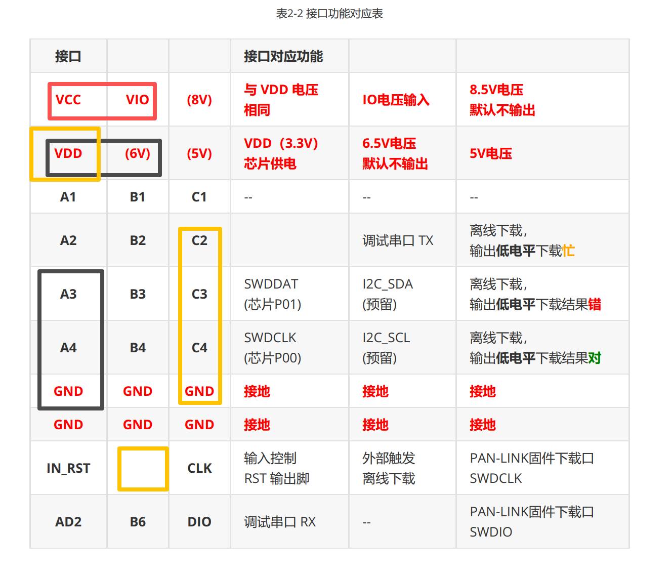 注:由于VDD只有一个接线端口,机台烧录需要从vdd进行1分2,1路给MCU供电,1路给机台接线使用。