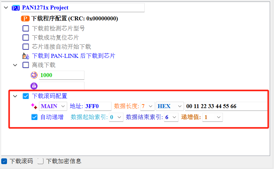 1、滚码读取:读取滚码地址需要和设置地址一致